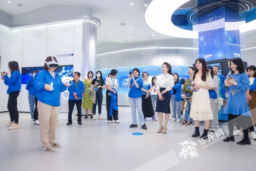 記者們前往玉泉湖數(shù)字文旅產(chǎn)業(yè)城數(shù)字經(jīng)濟(jì)展示中心。華龍網(wǎng)-新重慶客戶端 歐武夷 攝