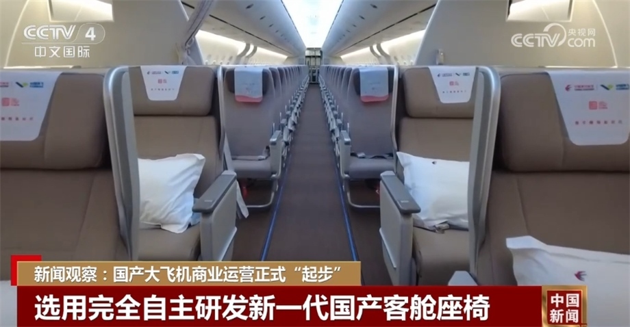 另外,飛機公務艙、經(jīng)濟艙均選用完全自主研發(fā)的新一代國產(chǎn)客艙座椅。其中,8個公務艙座椅為全鋁合金框架結(jié)構(gòu),采用搖籃式設計,后靠可達120度,前后座椅間距超過1米;156個經(jīng)濟艙設計采用3-3布局,中間座位比兩邊座位寬1.5厘米;加上C919客艙擁有2.25米的過道高度,旅客能感受到舒適的頂部和前方視覺空間。