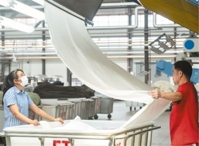 近日,在廣西梧州岑溪市大業(yè)鎮(zhèn)的西部(岑溪)創(chuàng)業(yè)園泰森新紡織產(chǎn)業(yè)集聚區(qū)某車(chē)間,染整智能生產(chǎn)線(xiàn)開(kāi)足馬力高效作業(yè),工人們?cè)趰徫簧厦β?,呈現(xiàn)出一片熱火朝天的生產(chǎn)景象。岑溪泰森項(xiàng)目以數(shù)字化轉(zhuǎn)型為主要發(fā)展方向,打造數(shù)字化轉(zhuǎn)型“5G+智慧工廠”行業(yè)新標(biāo)桿。 何華文攝(人民視覺(jué))