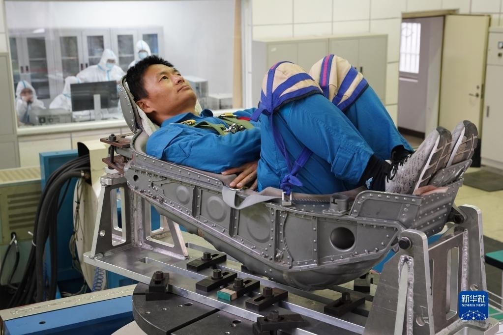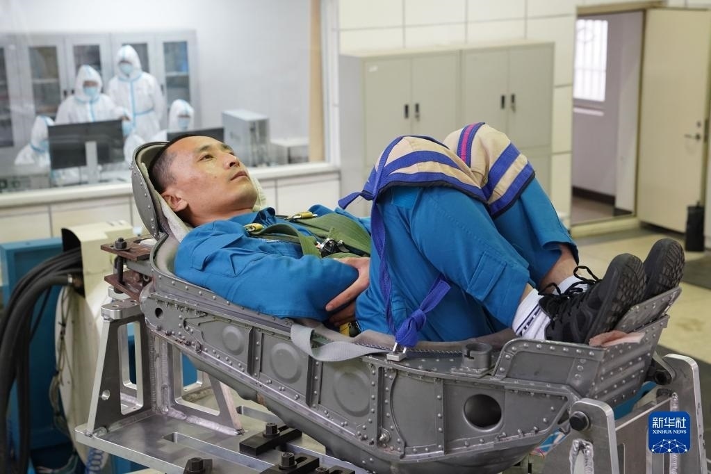 神舟十六號(hào)航天員桂海潮進(jìn)行離心機(jī)訓(xùn)練(2023年4月6日攝)。新華社發(fā)(徐部 攝)