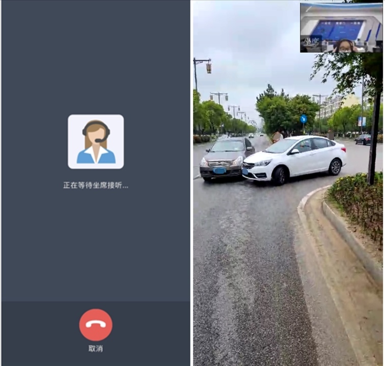 當(dāng)事人點(diǎn)擊“視頻報(bào)警”按鈕后,呼叫等待公安交管部門(mén)接警人員接聽(tīng),接警人員接聽(tīng)后進(jìn)入雙方視頻通話。