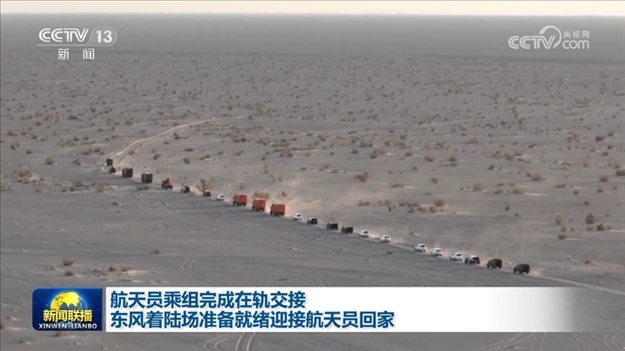 央視網(wǎng)消息(新聞聯(lián)播):今天(6月2日),神舟十五號(hào)、神舟十六號(hào)航天員乘組在中國(guó)空間站進(jìn)行交接儀式,神舟十五號(hào)航天員將于6月4日返回東風(fēng)著陸場(chǎng),著陸場(chǎng)系統(tǒng)已完成多次搜救回收演練,做好準(zhǔn)備迎接航天員回家。