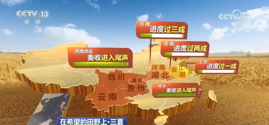 農(nóng)業(yè)農(nóng)村部小麥機(jī)收調(diào)度顯示,目前,全國(guó)已收冬小麥面積7500多萬(wàn)畝,麥?zhǔn)者M(jìn)度過(guò)兩成。其中,西南地區(qū)、湖北麥?zhǔn)者M(jìn)入尾聲;河南進(jìn)度過(guò)三成、安徽進(jìn)度過(guò)兩成、江蘇進(jìn)度過(guò)一成。