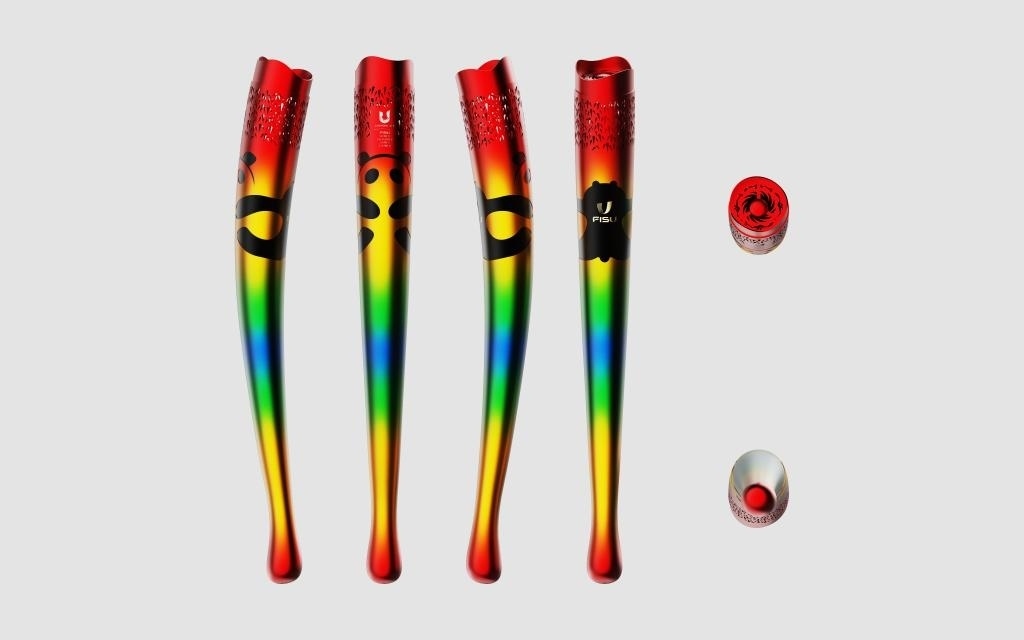 作為大型體育賽事中的一個(gè)重要象征物,火炬無疑是傳遞城市精神的重要窗口。成都大運(yùn)會(huì)火炬“蓉火”取成都的簡(jiǎn)稱“蓉”,同時(shí)寓有“融合”“包容”之意?;鹁孢\(yùn)用多彩漸變的大運(yùn)會(huì)主視覺色塊,將朱紅、明黃、翠綠、湖藍(lán)四個(gè)漸變色整合起來,又呈現(xiàn)出成都熱情、活力、時(shí)尚的多彩生活與大學(xué)生的斑斕青春。