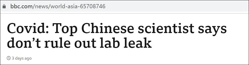 關(guān)于新冠病毒的起源,科學(xué)界至今仍無定論。5月31日,英國廣播公司(BBC)發(fā)布題為《新冠病毒溯源:頂級中國科學(xué)家稱不該排除實(shí)驗(yàn)室泄漏》的報(bào)道。這個標(biāo)題乍一看,很容易讓人以為實(shí)驗(yàn)室泄漏一說有了新證據(jù)。