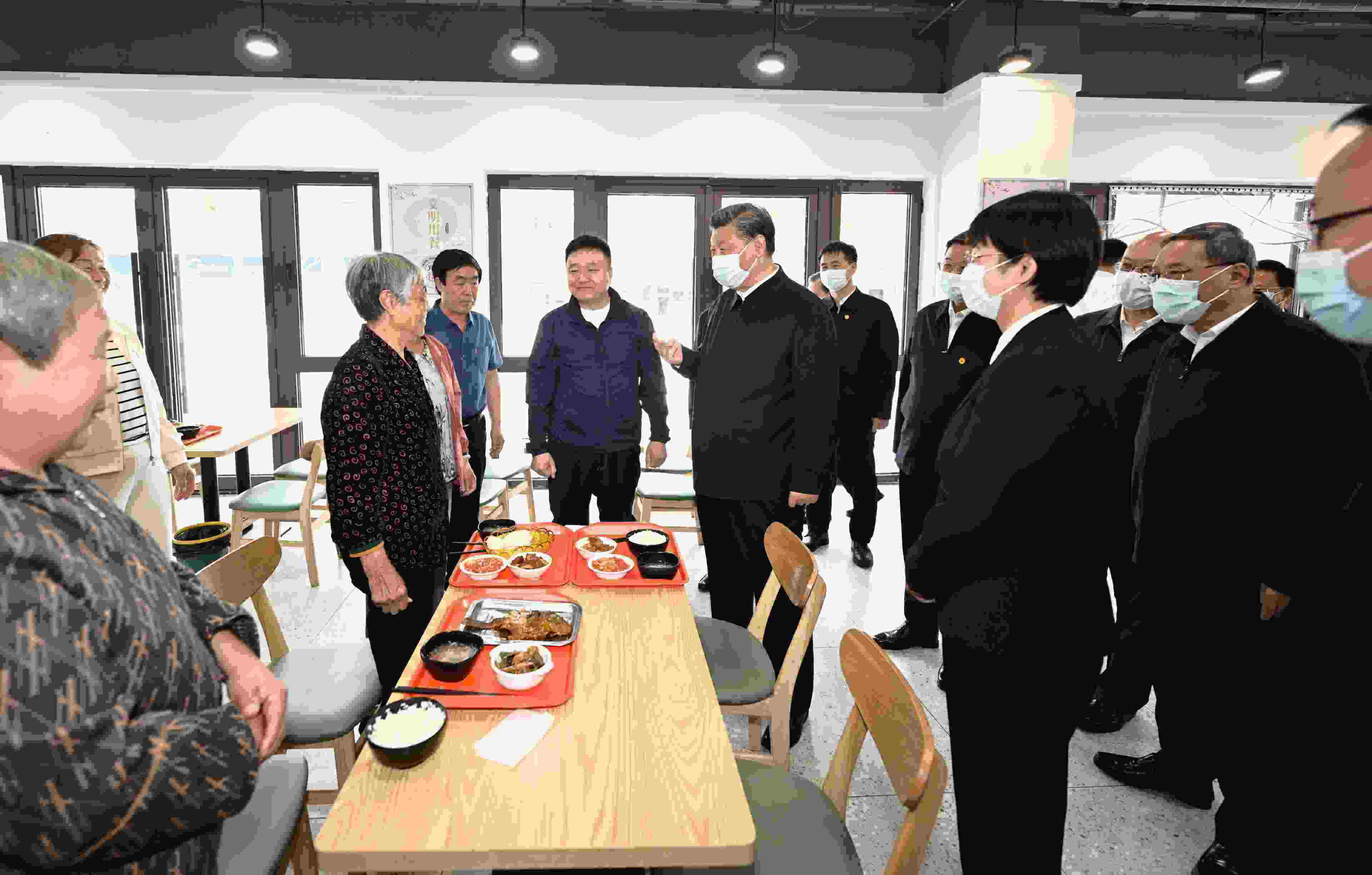 △5月10日,習(xí)近平總書記在河北省雄安新區(qū)考察,并主持召開高標(biāo)準(zhǔn)高質(zhì)量推進雄安新區(qū)建設(shè)座談會。這是10日上午,習(xí)近平在容東片區(qū)南文營社區(qū)食堂同就餐的社區(qū)老人親切交流。