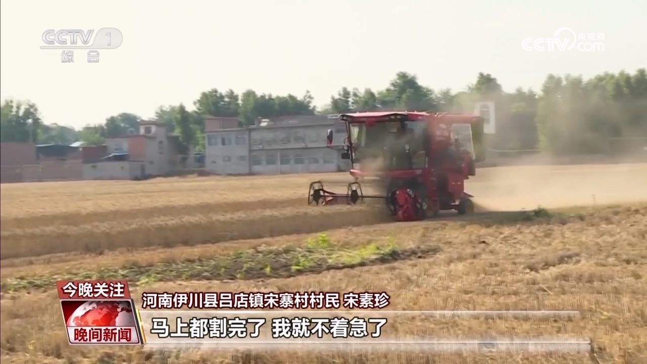 伊川縣呂店鎮(zhèn)宋寨村村民 宋素珍:前幾天下雨小麥?zhǔn)詹换貋恚睦锟尚幕?,鄉(xiāng)里派履帶式收割機(jī),我這十幾畝地馬上都挨?。ㄝ喌剑┝?,馬上都割完了,我就不著急了。