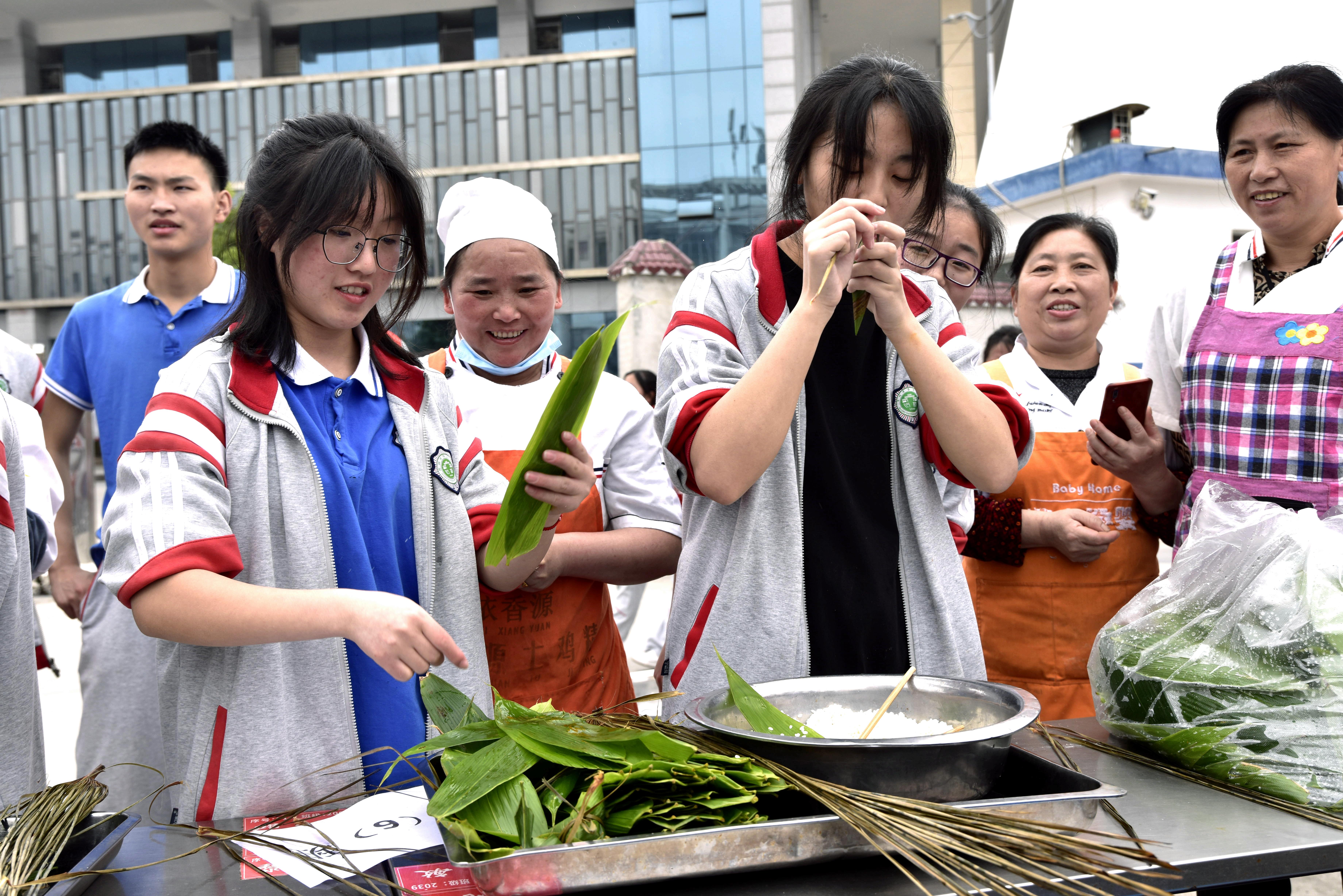 近日拍攝的貴州省務(wù)川中學高三學生在參加“美食減壓”迎高考活動。