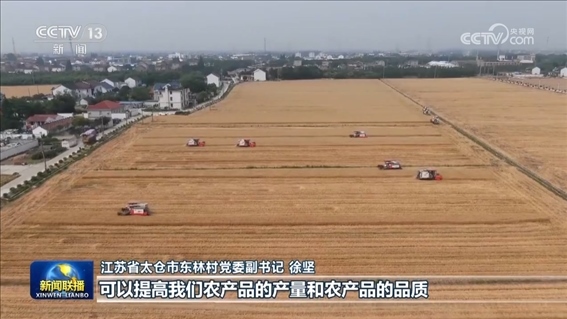 在今年的麥?zhǔn)找痪€,更多的綠色生產(chǎn)模式正在推廣。江蘇省太倉(cāng)市東林村引進(jìn)先進(jìn)設(shè)備,把收割后的秸稈加工成高質(zhì)量的牛羊飼料,而牛羊產(chǎn)生的糞肥經(jīng)過發(fā)酵后制成有機(jī)肥拋撒還田,實(shí)現(xiàn)種養(yǎng)循環(huán)。