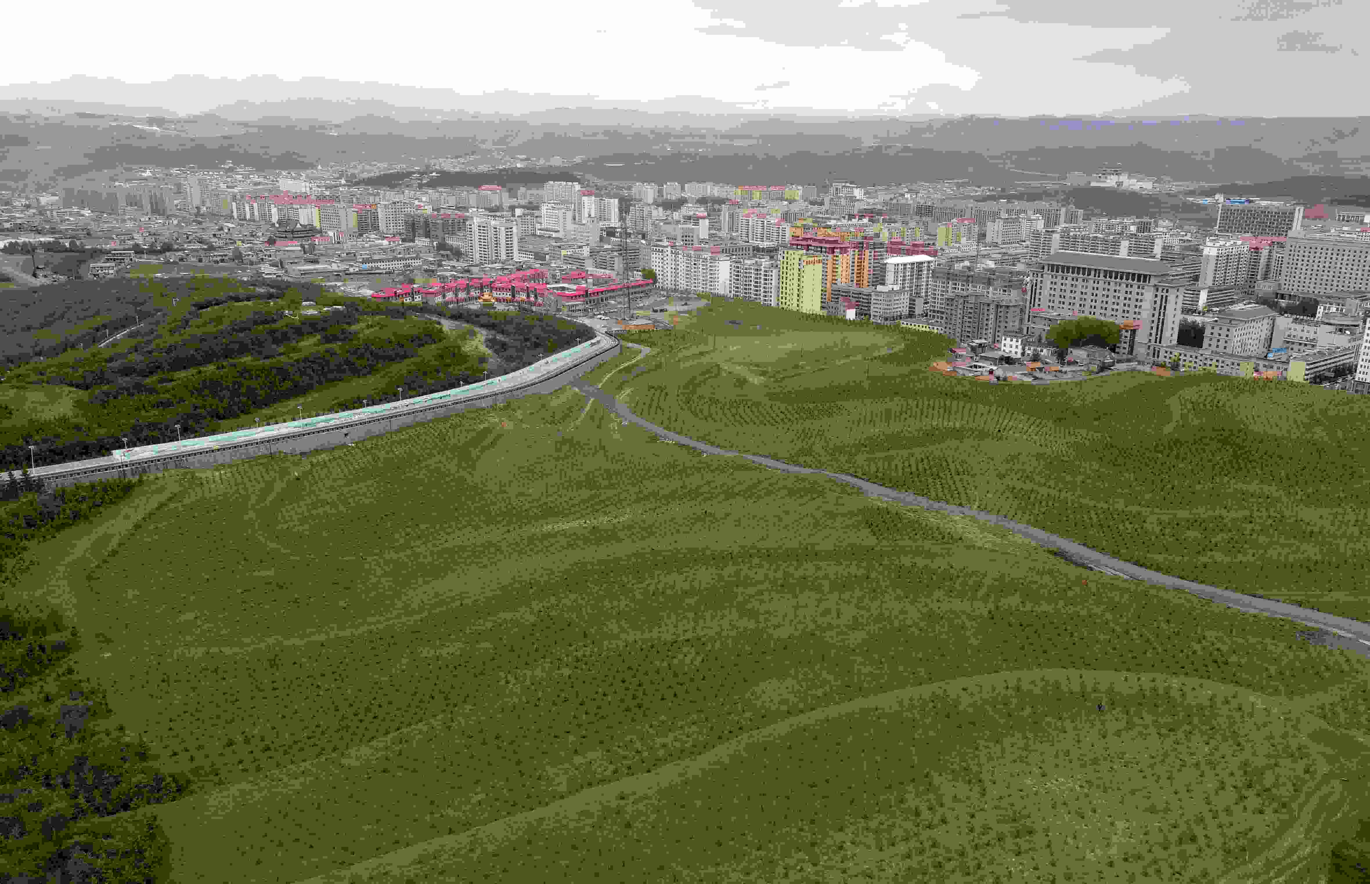 6月5日拍攝的位于甘肅省甘南藏族自治州首府合作市的錄豆昂綠化基地。 張進剛 攝