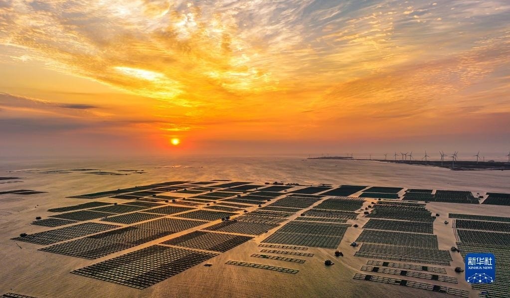山東榮成:海洋牧場朝霞如畫