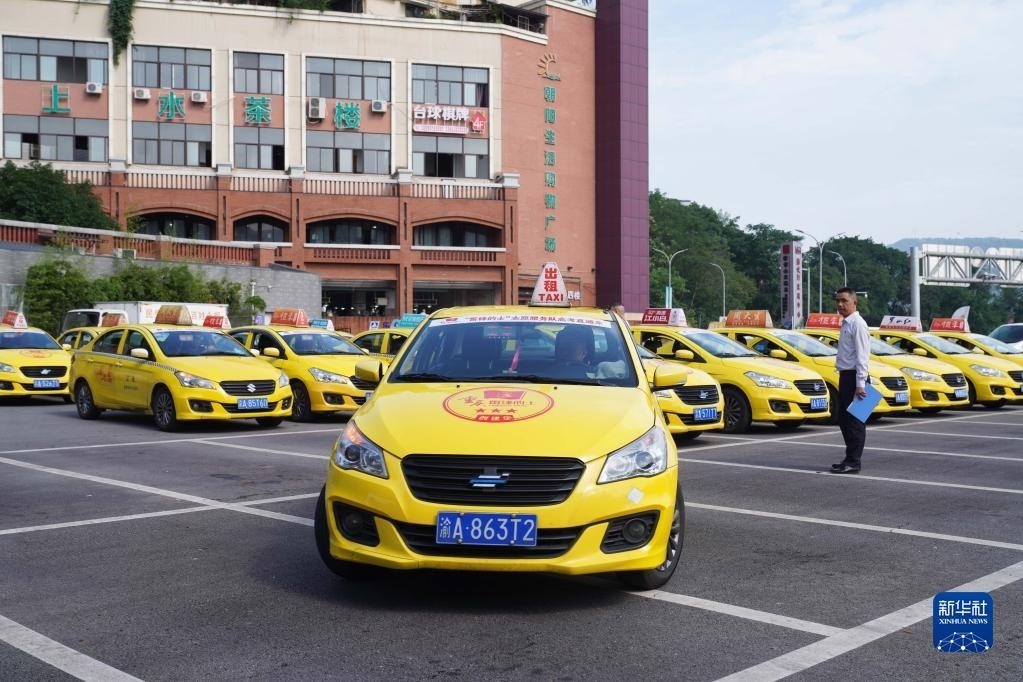 當(dāng)日,在重慶公運集團北碚分公司停車場,當(dāng)?shù)亍袄卒h的士”志愿服務(wù)隊高考直通車集結(jié)出發(fā)。高考期間,考生可憑準(zhǔn)考證免費搭乘愛心送考車前往轄區(qū)各考點,也可以通過公布的電話進(jìn)行預(yù)約乘坐。新華社發(fā)(秦廷富 攝)