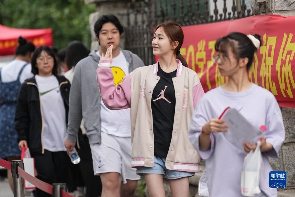 6月7日,在北京師范大學(xué)附屬實驗中學(xué)考點門口,考生走進考點后向家長揮手。