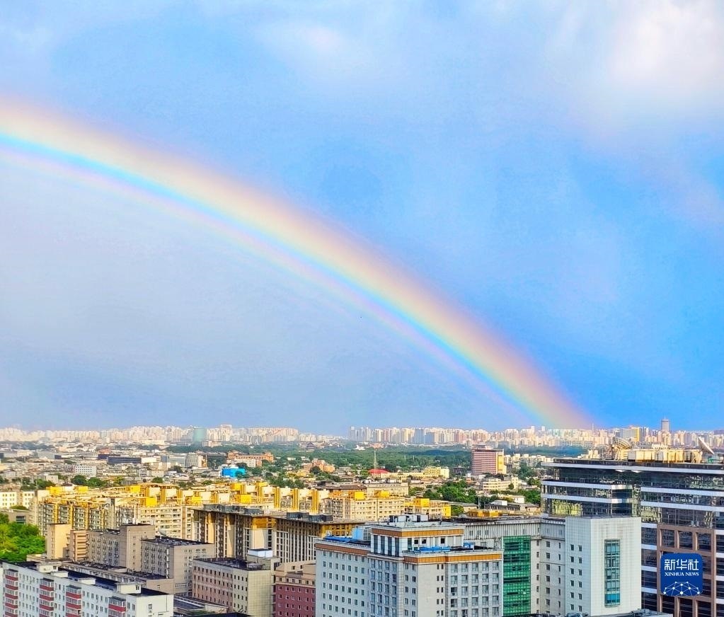 6月11日在北京宣武門附近拍攝的彩虹(手機(jī)照片)。當(dāng)日,一場(chǎng)降雨過(guò)后,北京上空出現(xiàn)彩虹。
