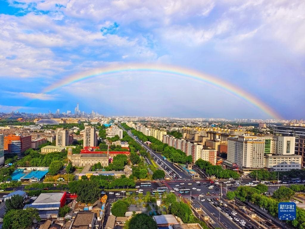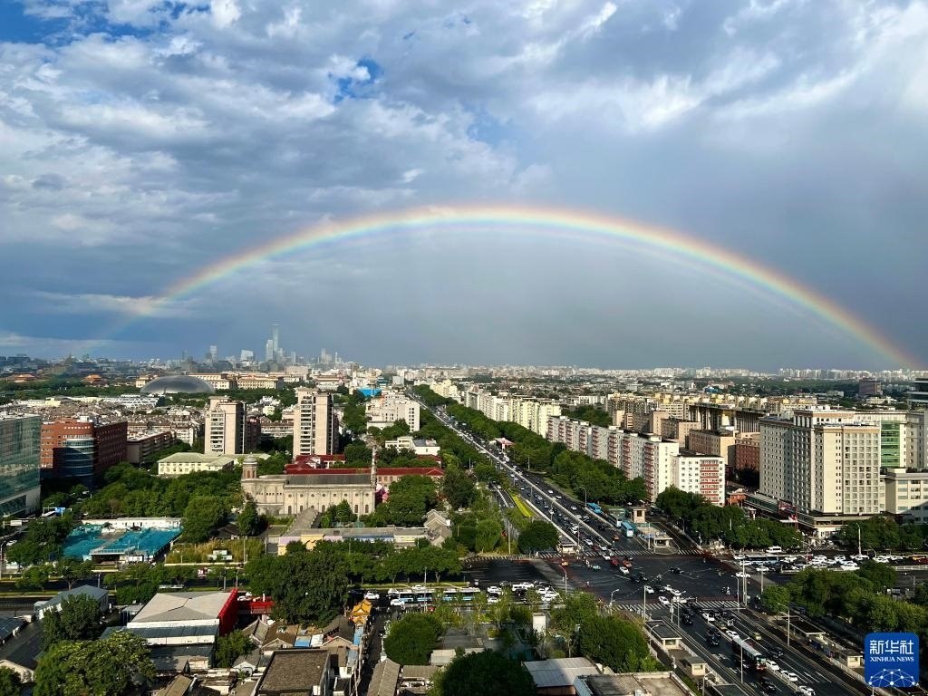 這是6月11日在北京宣武門附近拍攝的彩虹(手機(jī)照片)。