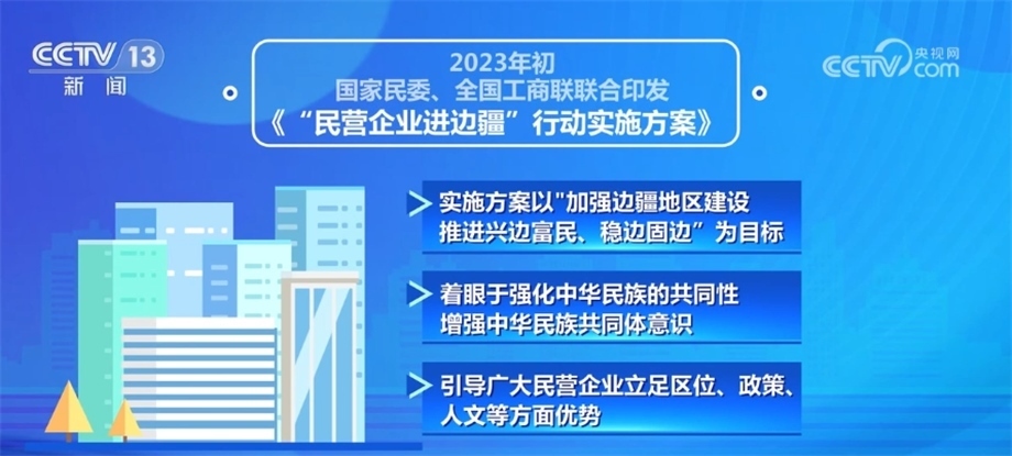 2023年初,國家民委、全國工商聯(lián)聯(lián)合印發(fā)了《“民營企業(yè)進(jìn)邊疆”行動實(shí)施方案》,實(shí)施方案以“加強(qiáng)邊疆地區(qū)建設(shè),推進(jìn)興邊富民、穩(wěn)邊固邊”為目標(biāo),著眼于強(qiáng)化中華民族的共同性、增強(qiáng)中華民族共同體意識,引導(dǎo)廣大民營企業(yè)立足區(qū)位、政策、人文等方面優(yōu)勢,積極參與邊疆地區(qū)基礎(chǔ)設(shè)施建設(shè),助力邊疆地區(qū)提升資源轉(zhuǎn)化能力,推動邊疆地區(qū)融入全國統(tǒng)一大市場,促進(jìn)邊疆各民族交往交流交融,共同走向社會主義現(xiàn)代化,實(shí)現(xiàn)共同富裕。