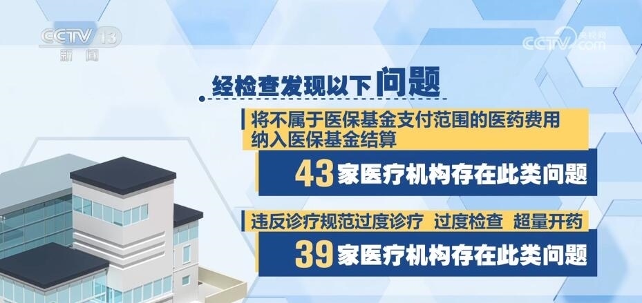 國家飛檢組共抽查了48家定點(diǎn)醫(yī)療機(jī)構(gòu),包括三級公立醫(yī)院40家、三級民營醫(yī)院3家、二級以下民營醫(yī)療機(jī)構(gòu)5家,經(jīng)檢查發(fā)現(xiàn)以下問題:一、重復(fù)收費(fèi)、超標(biāo)準(zhǔn)收費(fèi)、分解項(xiàng)目收費(fèi),48家醫(yī)療機(jī)構(gòu)存在此類問題。二、串換藥品、醫(yī)用耗材、診療項(xiàng)目和服務(wù)設(shè)施,46家醫(yī)療機(jī)構(gòu)存在此類問題。三、將不屬于醫(yī)?;鹬Ц斗秶尼t(yī)藥費(fèi)用納入醫(yī)?;鸾Y(jié)算,43家醫(yī)療機(jī)構(gòu)存在此類問題。四、違反診療規(guī)范過度診療、過度檢查、超量開藥,39家醫(yī)療機(jī)構(gòu)存在此類問題。此外,部分醫(yī)療機(jī)構(gòu)存在分解住院,藥品、醫(yī)用耗材進(jìn)銷存不符,未嚴(yán)格執(zhí)行國家組織藥品耗材集中帶量采購政策,按病種付費(fèi)模式下高靠病組、低標(biāo)準(zhǔn)入院等其他違法違規(guī)問題;一些醫(yī)療機(jī)構(gòu)存在虛構(gòu)醫(yī)藥服務(wù)項(xiàng)目問題。
