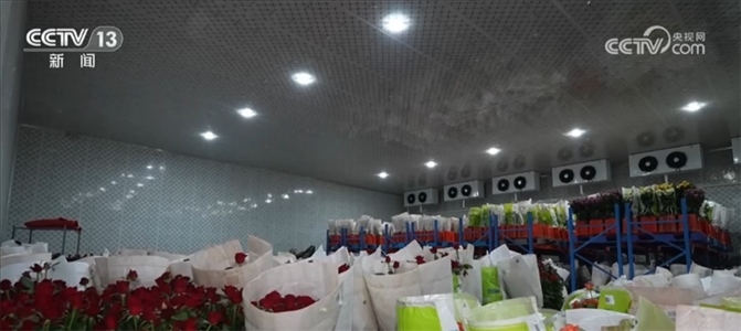 安寧諾斯沃德花卉產(chǎn)業(yè)有限公司副總經(jīng)理 王子西:這個(gè)溫度是一個(gè)4℃—6℃的冷環(huán)境,鮮花如果帶有田間熱,它的開放速度是非??斓模栽谶@個(gè)車間里,通過這樣的冷環(huán)境減緩它的開放速度,叫作休眠,讓我們的鮮花有更多的時(shí)間留到下一個(gè)環(huán)節(jié)進(jìn)行加工、物流和處理。