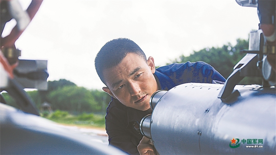 機(jī)務(wù)人員認(rèn)真檢查戰(zhàn)機(jī)。