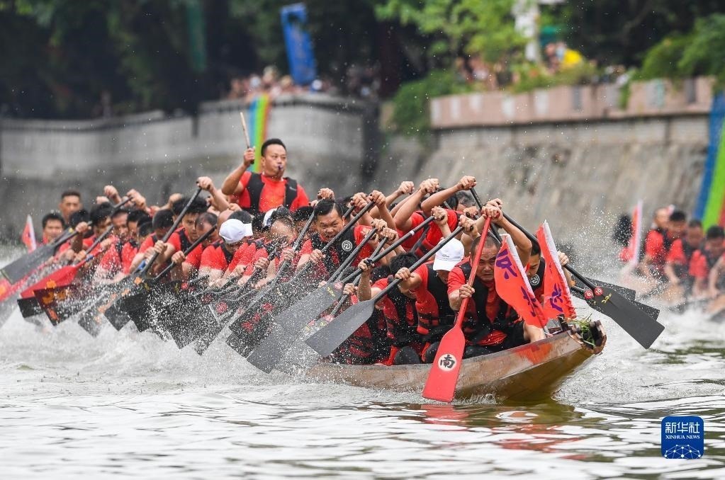 自農(nóng)歷四月初八“起龍舟”開始,廣州地區(qū)就開啟了劃龍舟、迎端午的年度大戲。6月15日,車陂村12條龍船在車陂涌進(jìn)行龍舟競渡。