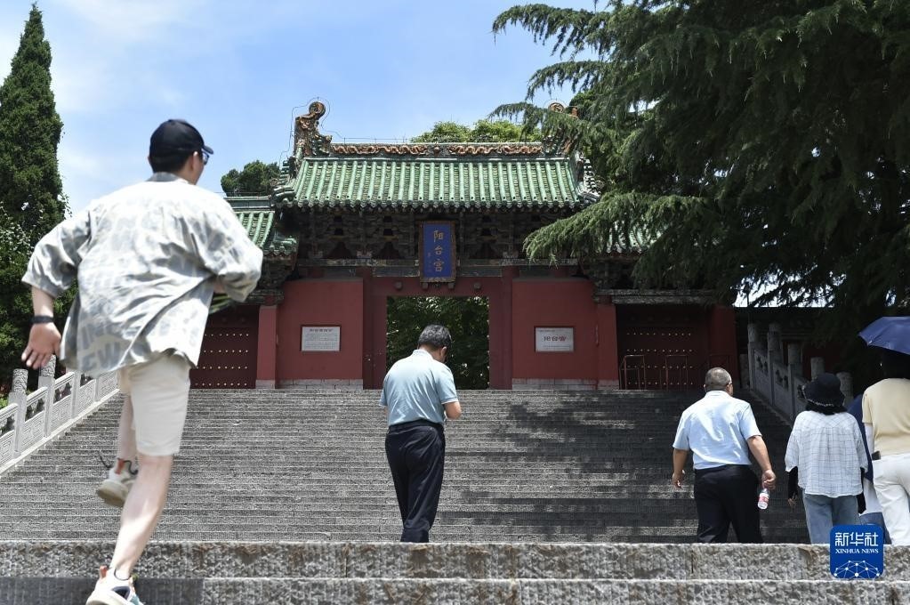 6月15日,游人在王屋山上參觀一處古跡。