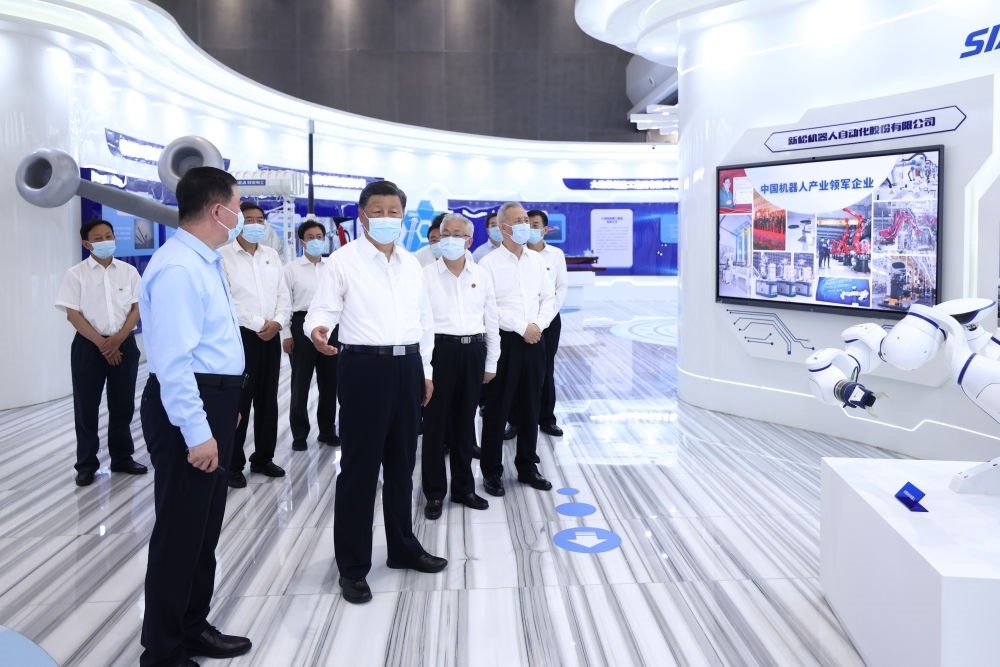 2022年8月17日下午,習(xí)近平在遼寧沈陽新松機(jī)器人自動化股份有限公司展廳,了解公司生產(chǎn)經(jīng)營、自主創(chuàng)新情況。