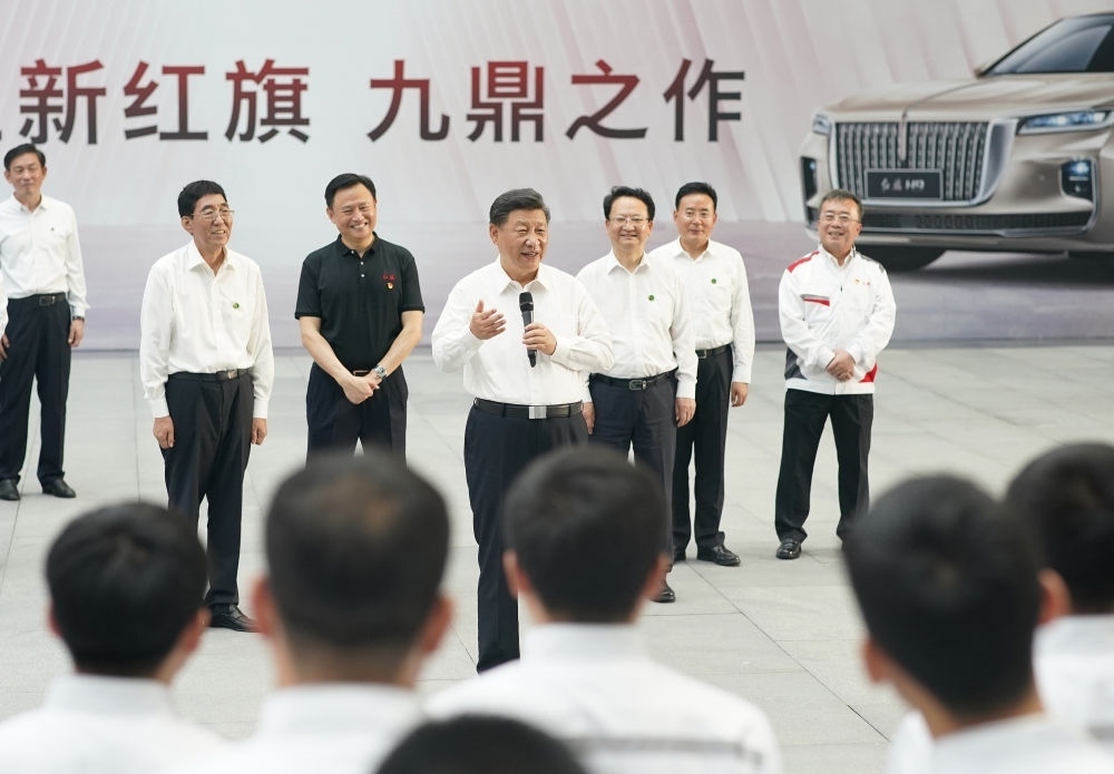 2020年7月23日下午,習(xí)近平在吉林省長春市一汽集團(tuán)研發(fā)總院,同職工代表親切交流。