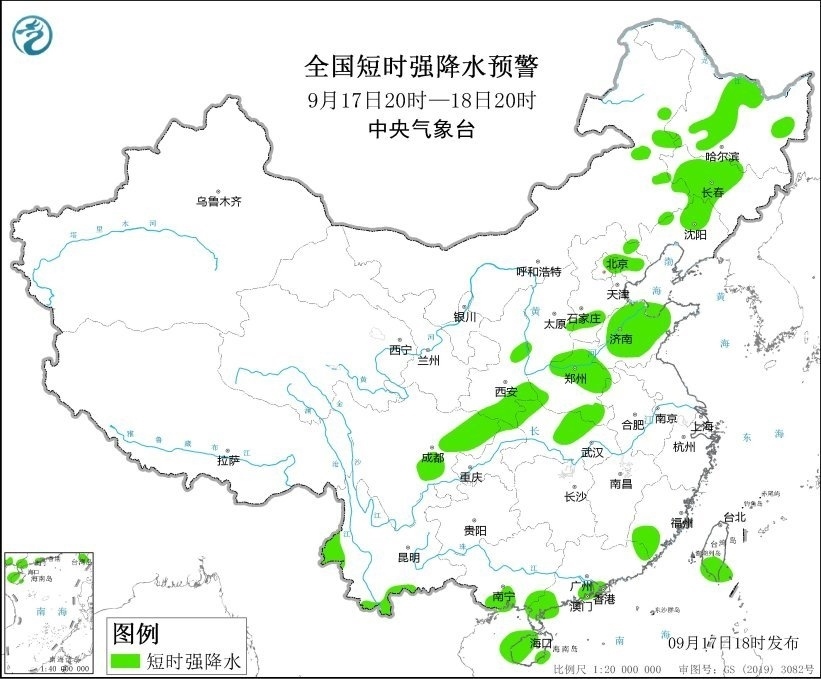 央視網(wǎng)消息:據(jù)中央氣象臺網(wǎng)站消息,中央氣象臺9月17日18時繼續(xù)發(fā)布強(qiáng)對流天氣藍(lán)色預(yù)警。預(yù)計9月17日20時至18日20時,內(nèi)蒙古東部、黑龍江南部和東北部、吉林中西部、遼寧中西部、陜西北部和中部、山西北部和東南部、河北東北部和南部、北京東北部、天津北部、山東西北部、河南中北部和東部、湖北北部等地的部分地區(qū)將有8-10級雷暴大風(fēng)或冰雹天氣,局地風(fēng)力可達(dá)11級以上;內(nèi)蒙古東部、黑龍江中西部、吉林中西部、遼寧西部和北部、陜西南部、河北東北部和南部、北京東北部、天津北部、山東中西部、河南北部和東部、湖北中部和西部、福建南部、四川盆地中東部、云南西部和南部、廣西南部、廣東西南部、海南島、臺灣島南部等地的部分地區(qū)將有短時強(qiáng)降水天氣,最大小時雨量20-50毫米,局地可達(dá)60毫米以上。