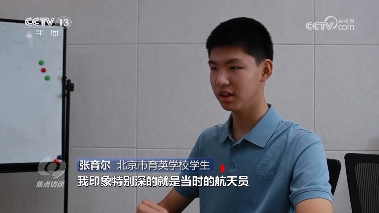 北京市育英學(xué)校學(xué)生張育爾:“我印象特別深的是當(dāng)時航天員拿針筒把氣泡注射到水里,然后形成了一個類似于放大鏡的視覺效果,看到這個感覺很新鮮、很科幻,一開始是好奇心驅(qū)動了,后來就開始了解這方面的東西?!?/p>