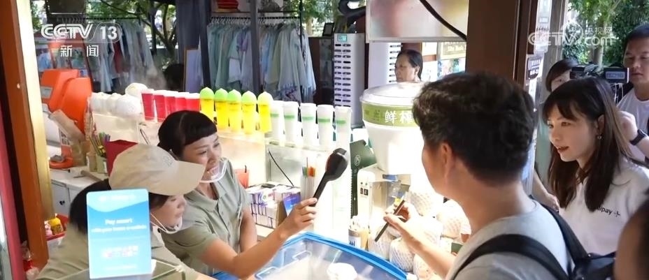 在亞運特許商品零售店里,高管們開啟了“買買買”模式,當(dāng)他們在付款時可以使用本國的電子錢包進行支付。