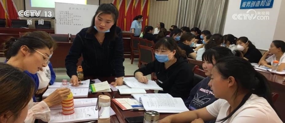像張彩麗這樣的育嬰輔導(dǎo)員在全縣有60名,陪伴著568名嬰幼兒的成長。每個周一,各個鎮(zhèn)點的育嬰輔導(dǎo)員都會根據(jù)教材集中備課,相互交流研討、提升服務(wù)技能。