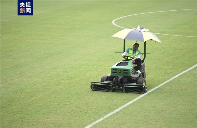 賽中,中場休息的時候,草皮維護(hù)組的工作人員要進(jìn)場修整,主要是整理被踢翻的草皮,補實平整場地,這些工作要在5分鐘內(nèi)完成,因為,兩隊的替補隊員還要在場內(nèi)訓(xùn)練。再則就是賽后修整,“雨天賽場的修整要求會更高,我們的壓力也會更大一些?!焙螙|奇說,為了防止意外情況的出現(xiàn),場館設(shè)施運維還專門準(zhǔn)備了完全符合技術(shù)要求的1000平方米備用草皮,以備不時之需。
