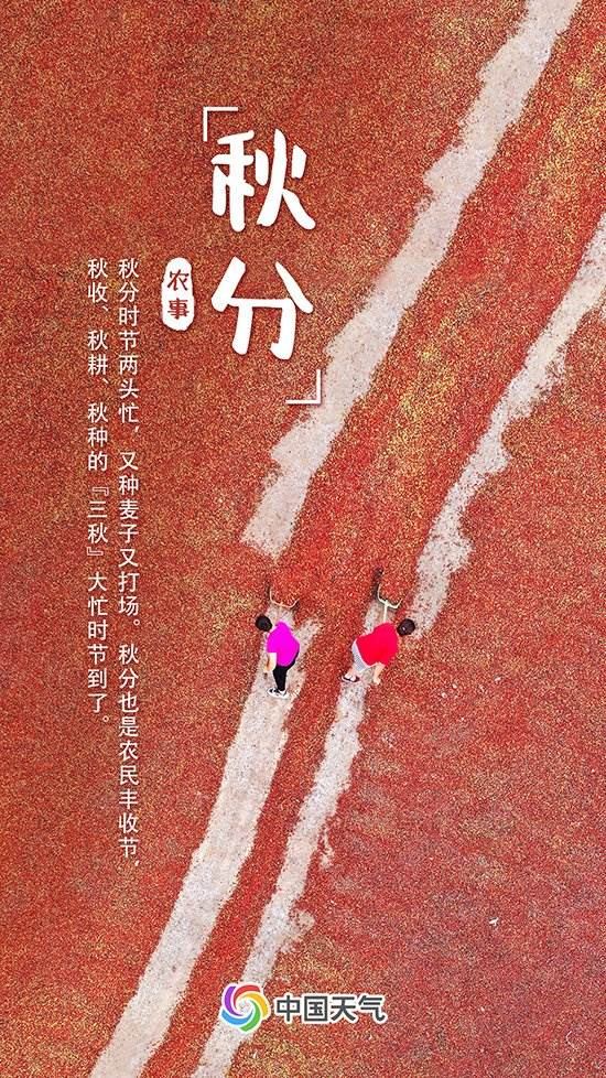 “秋分時節(jié)兩頭忙,又種麥子又打場?!鼻锓旨纫馕吨S收的喜悅,也是耕種的標志。此時正是秋收、秋耕和秋種的“三秋”生產(chǎn)期,需重點防范初霜凍、華西秋雨、寒露風、大霧等天氣對農(nóng)業(yè)生產(chǎn)方面可能造成的不利影響。