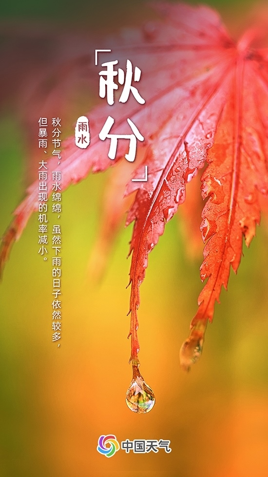 秋分時節(jié),南下的冷空氣與逐漸衰減的暖濕空氣相遇,易產(chǎn)生降水,如西南等地秋雨正當時。雖然下雨的日子依然較多,但暴雨、大雨出現(xiàn)的機率減小。