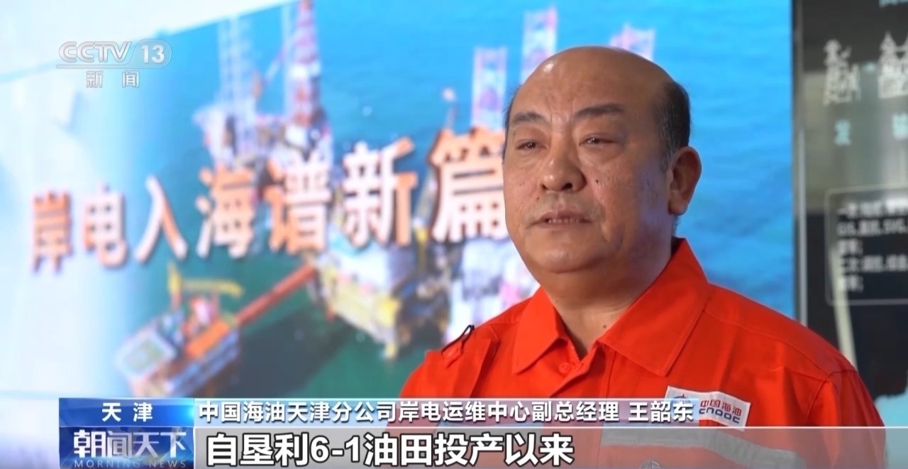 中國海油天津分公司岸電運維中心副總經(jīng)理 王韶東:自墾利6-1油田投產(chǎn)以來,岸電應(yīng)用工程已累計供電約3800萬度。按照設(shè)計規(guī)模,岸電三期工程全部投用后,渤海油田約75%的海上平臺將實現(xiàn)岸電供給。
