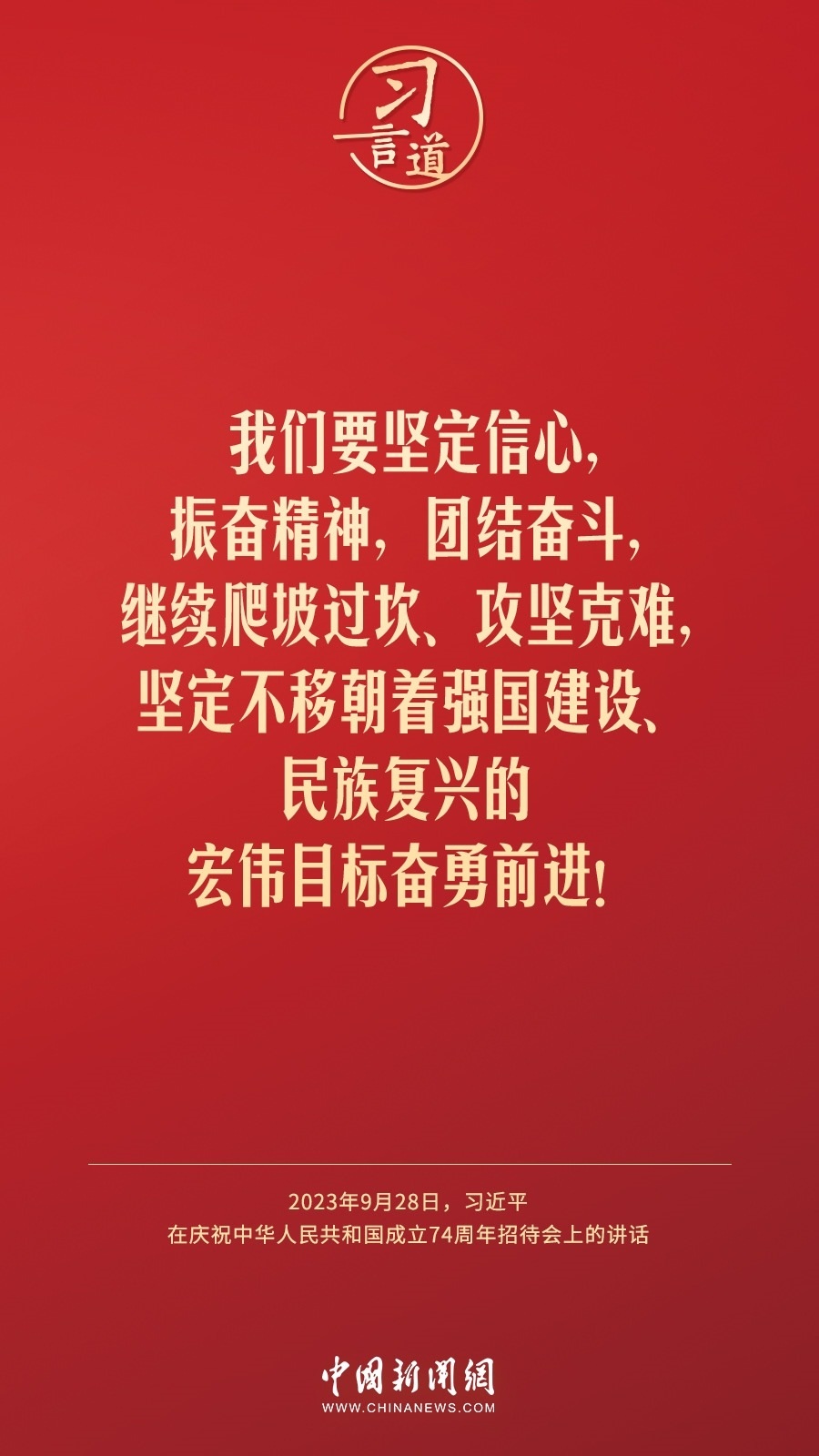 慶祝中華人民共和國成立74周年招待會28日晚在人民大會堂舉行。中共中央總書記、國家主席、中央軍委主席習近平出席招待會并發(fā)表重要講話。他強調(diào)——