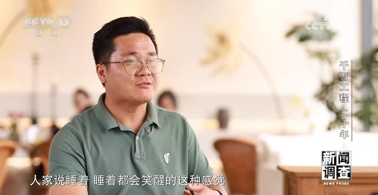 浙江安吉靈峰街道大竹園村返鄉(xiāng)創(chuàng)業(yè)青年 沈金龍:真正20多年,不管是經(jīng)濟(jì)還是質(zhì)感全部在提升,我們以前從來沒想過我們老百姓能住到像我們農(nóng)房試點(diǎn)這種房子,就是庭院、小橋流水這種房子,哪會想到,現(xiàn)在老百姓住在里面。而且不光是自己住,他還經(jīng)營起來了,還能靠著這個(gè)房子、這個(gè)環(huán)境變現(xiàn)。甚至我們現(xiàn)在都想想,人家說睡著、睡著都會笑醒的這種感覺,真是太美了。