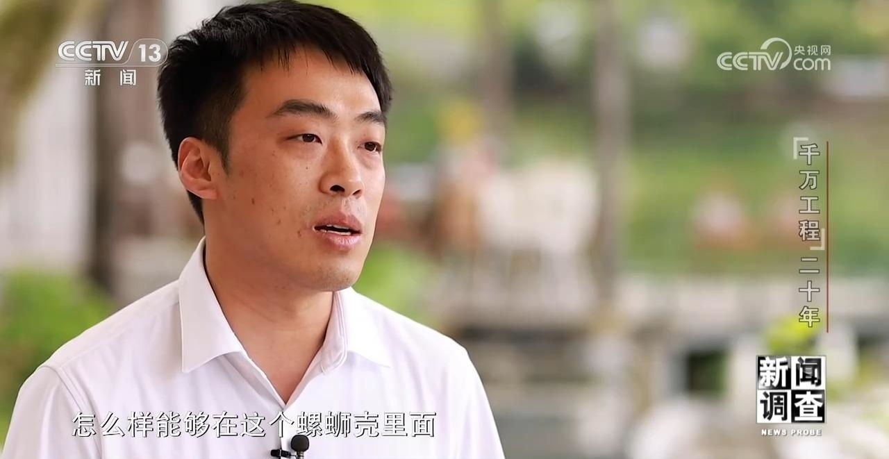 蔣偉峰:“千萬工程”它是一個(gè)系統(tǒng)工程,它是一項(xiàng)龍頭工程,所以總書記當(dāng)時(shí)說過一句話,我是印象最深刻的,就是說“千萬工程”的點(diǎn)定到哪里,我們各項(xiàng)配套服務(wù)就要跟進(jìn)到哪里。所以你看就是因?yàn)樗梢园逊椒矫婷娴牧α考燮饋泶蛟谝粋€(gè)點(diǎn)上,而且這個(gè)點(diǎn)打了20年,所以它發(fā)生的變化就是翻天覆地的。