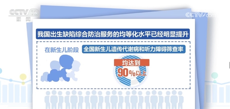 2009年以來,累計(jì)為1.3億名農(nóng)村生育婦女補(bǔ)服葉酸;全國婚檢率從2011年的41.9%提高至2021年的70.9%;全國產(chǎn)前篩查率從2011年的22.7%提高至2021年的85.7%;全國新生兒遺傳代謝病和聽力障礙篩查率均達(dá)到90%以上。建立起出生缺陷三級防治體系。