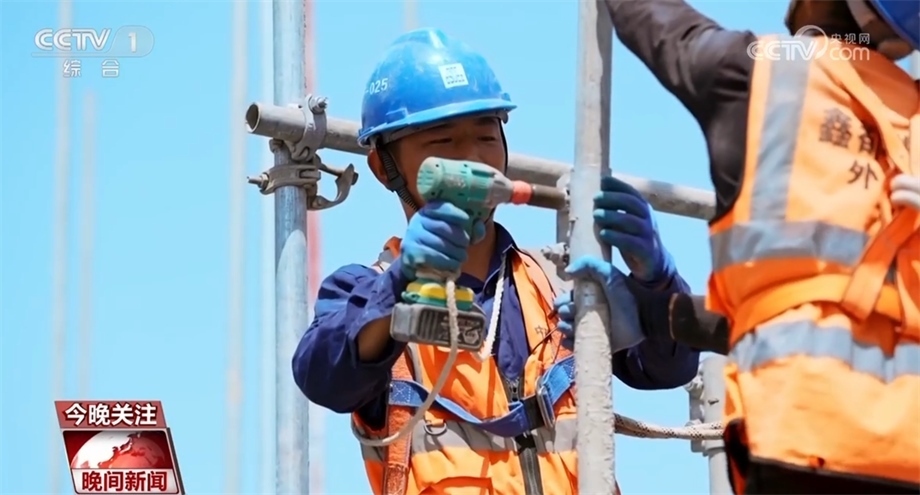 這是雄安新區(qū)容西片區(qū)安置房二期工程現(xiàn)場(chǎng),兩萬(wàn)多名工人正在這里戰(zhàn)高溫、搶工期。架子工的主要工作是搭建腳手架,工人需要長(zhǎng)時(shí)間在戶外高空作業(yè)。