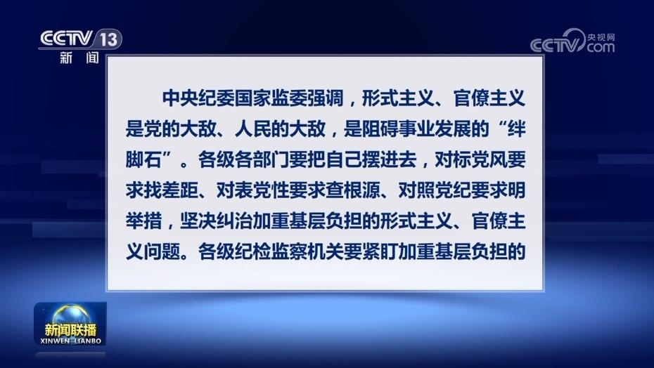 央視網(wǎng)消息(新聞聯(lián)播):二十屆中央紀委二次全會對加強作風建設作出部署,強調要重點糾治形式主義、官僚主義。日前,中央紀委國家監(jiān)委對十起加重基層負擔的形式主義、官僚主義典型問題進行公開通報。