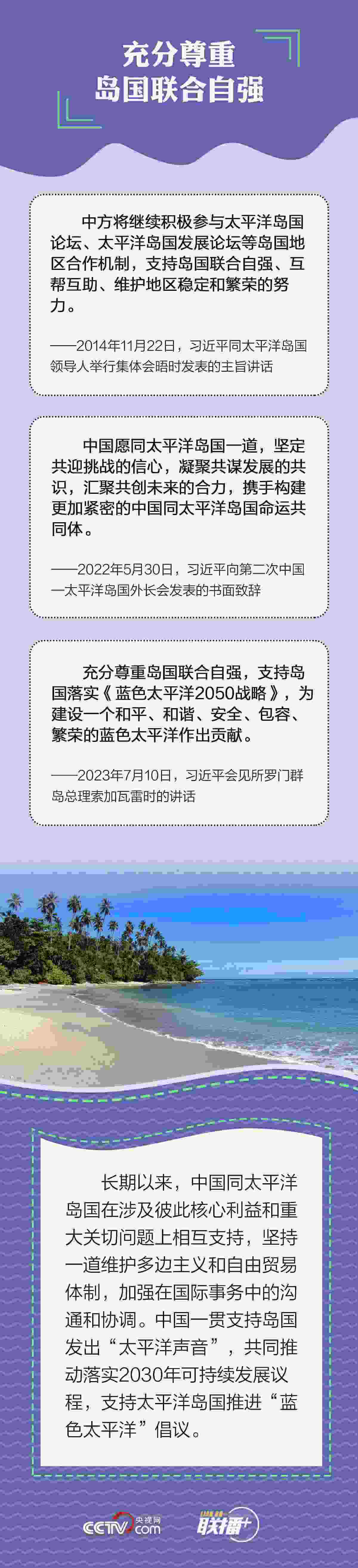 相互尊重是中國發(fā)展同太平洋島國關(guān)系的準則,共同發(fā)展是中國開展同太平洋島國合作的目標。央視網(wǎng)《聯(lián)播+》欄目與您一起學習了解。