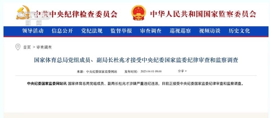 總臺(tái)央視記者 宋琎:今年3月27日,二十屆中央首輪巡視對(duì)象名單公布。“對(duì)國(guó)家體育總局黨組開展機(jī)動(dòng)巡視”這一消息迅速成為社會(huì)熱點(diǎn)。之后不到一周,中央紀(jì)委國(guó)家監(jiān)委通報(bào),時(shí)任國(guó)家體育總局黨組成員、副局長(zhǎng)杜兆才接受審查調(diào)查。體育領(lǐng)域反腐成為今年反腐敗工作的一大重點(diǎn)。