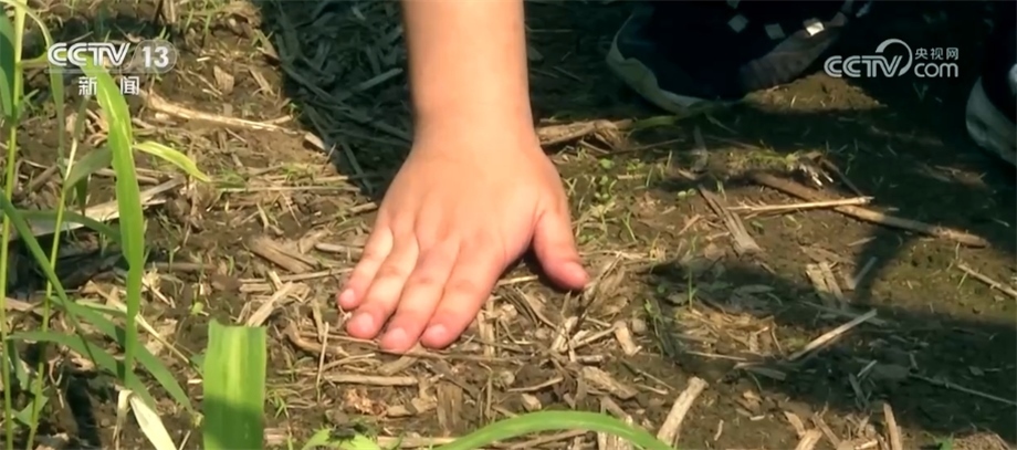 視角繼續(xù)向下來(lái)到地面。我們能夠看到田中有很多腐爛的秸稈,這就是當(dāng)?shù)乇Wo(hù)性耕作的核心——秸稈還田。簡(jiǎn)單說(shuō),就是每年秋收之后將秸稈留在田中,相當(dāng)于給黑土地蓋上了一層“被子”,這樣一來(lái)風(fēng)吹不走了、雨也帶不走了。傳統(tǒng)的耕作方式要先將秸稈離田、起壟、播種,農(nóng)機(jī)要多次下地,這里通過(guò)研發(fā)保護(hù)性耕作的配套農(nóng)機(jī),將多個(gè)步驟歸為一步,同時(shí)采取免耕、少耕等辦法,最大程度減少對(duì)黑土地的破壞。