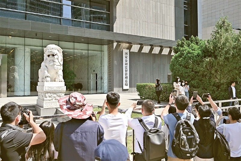2023年5月18日,國家金融監(jiān)督管理總局正式掛牌,我國金融監(jiān)管機構(gòu)改革邁出重要一步。圖為當(dāng)日媒體記者在國家金融監(jiān)督管理總局門前拍攝。 新華社記者 李鑫/攝
