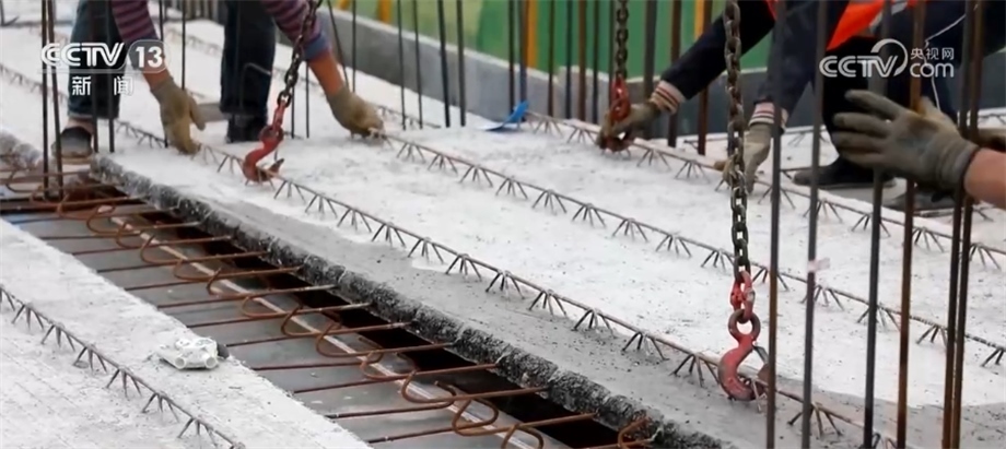 總臺央視記者 鄭怡哲:小時(shí)候很多人都玩過搭積木蓋房子的游戲,用標(biāo)準(zhǔn)化的零件就可以拼裝出一個(gè)完整的建筑結(jié)構(gòu)。而現(xiàn)在裝配式建筑的理念也越來越多地在樓房施工中得到應(yīng)用,我面前的樓梯就是一個(gè)提前在工廠里做好的預(yù)制件,按照以往的工藝,這樣的樓梯一層就需要一周左右的時(shí)間,現(xiàn)在一個(gè)小時(shí)以內(nèi)就可以完成安裝,而且可以立刻投入使用,讓施工的效率更上一層樓。