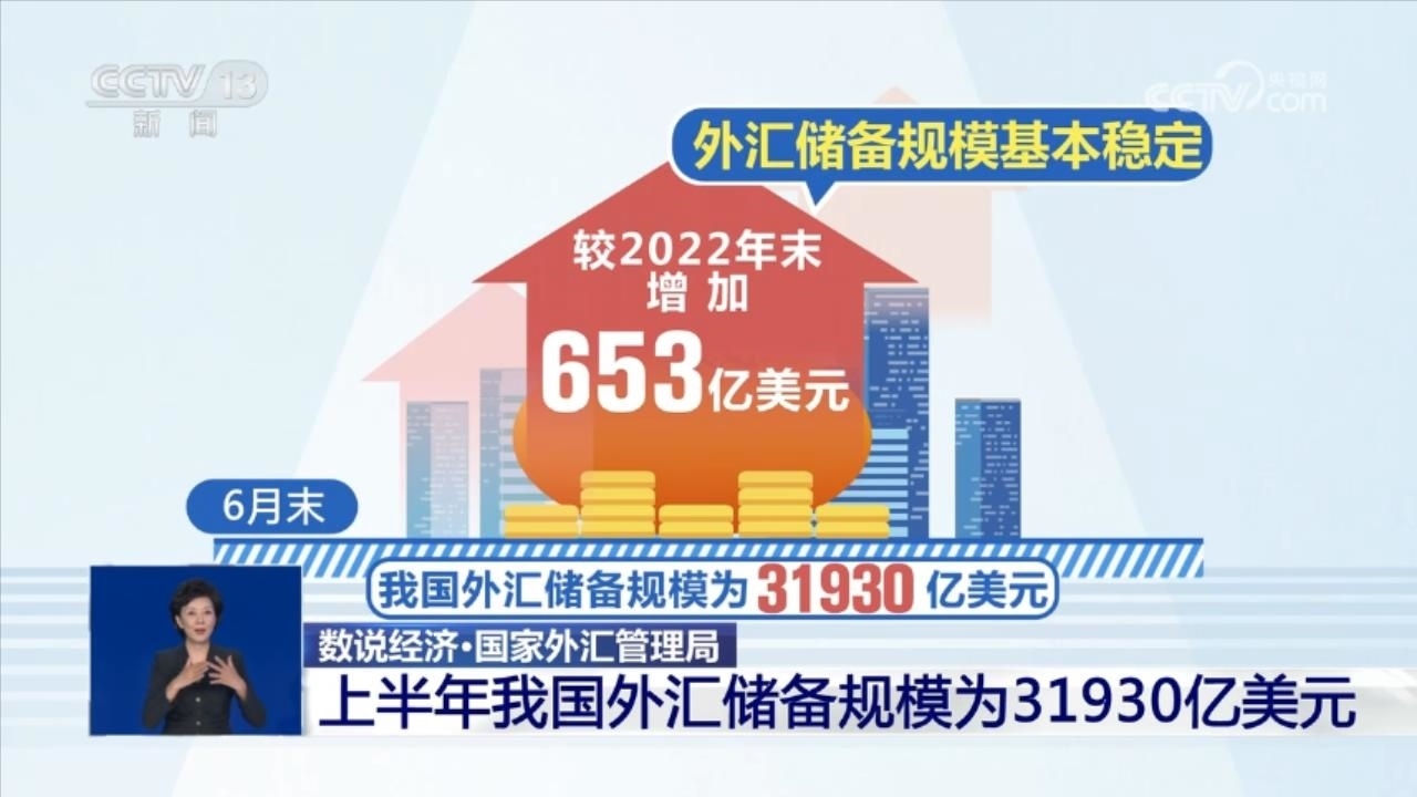 外匯儲備規(guī)模基本穩(wěn)定。截至2023年6月末,我國外匯儲備規(guī)模為31930億美元,較2022年末增加653億美元。