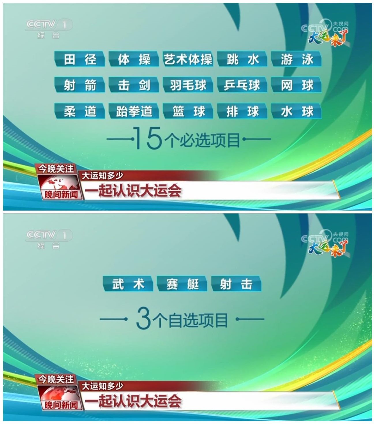 大運(yùn)會共設(shè)18個大項269個小項,其中,15個是必選項目,3個是自選項目。大運(yùn)會上的必選競賽項目都是奧運(yùn)項目,規(guī)模僅次于奧運(yùn)會。