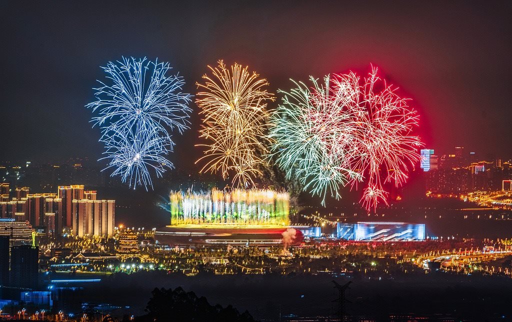 △2023年7月18日,成都大運(yùn)會開幕式第一次帶焰火彩排。