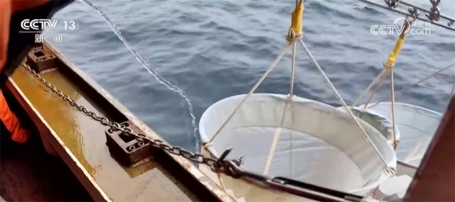 多參數(shù)海洋觀測(cè)系統(tǒng)是本次科考使用頻率最高的設(shè)備,涉及海洋化學(xué)、微生物等多個(gè)領(lǐng)域。在系統(tǒng)回收后,緊接著,隊(duì)員將垂直拖網(wǎng)放下水面。
